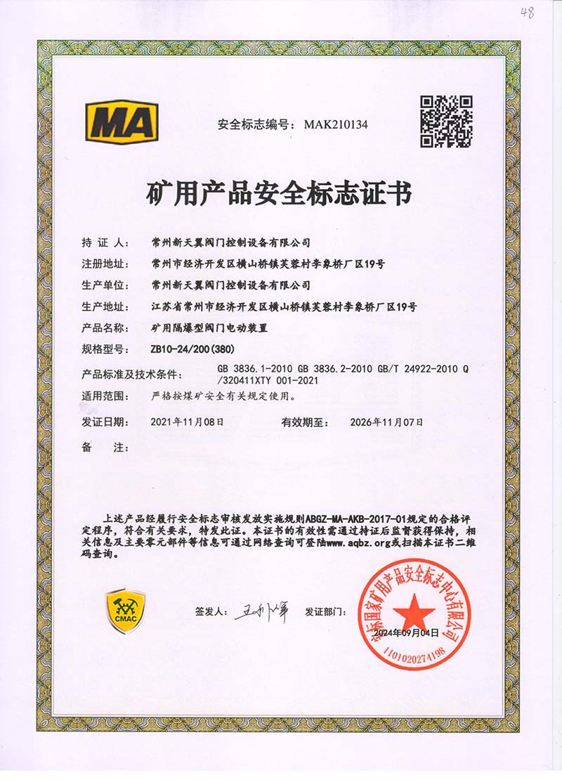 ZB20-24 200(660) 防爆合格證